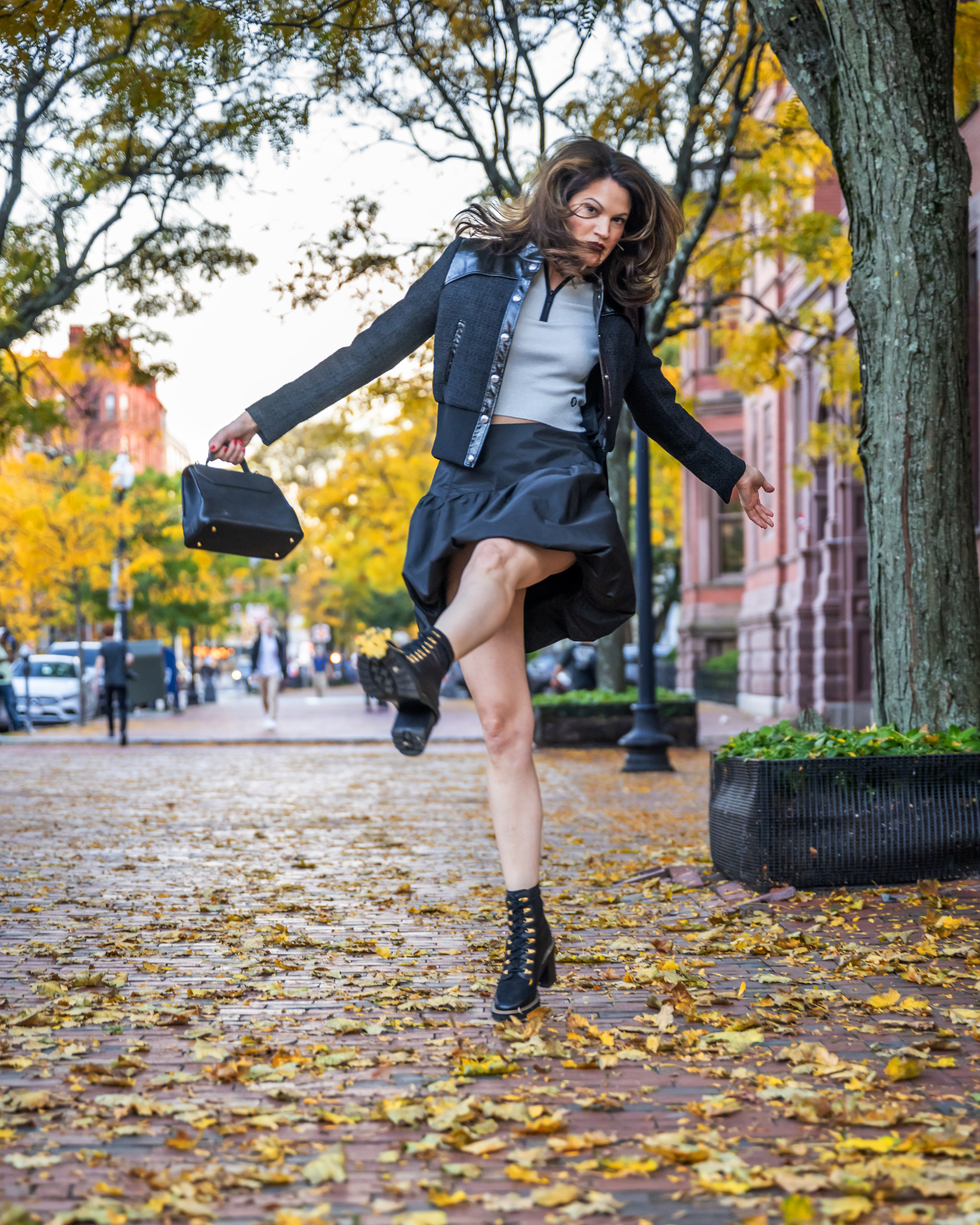 Since then, I’ve walked for both emerging and established fashion designers in Boston and Providence. (Pictured: designs by Peach Carr (left) and Urban Pigeons (right) Shoes: Stewart Weitzman platforms in patent leather). I’m also elated to share that I am now represented by two agencies, IKONIC Models & Talent and New England Models Group (NEMG).