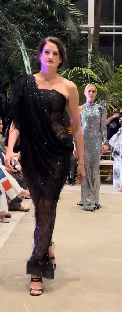 Spring Colors show, Providence, RI.July 2023 (Designer: gown by Leonel Lirio (right) and designer Conrad Lamour couture (left)). Below Malva Janaby designs, spring show.